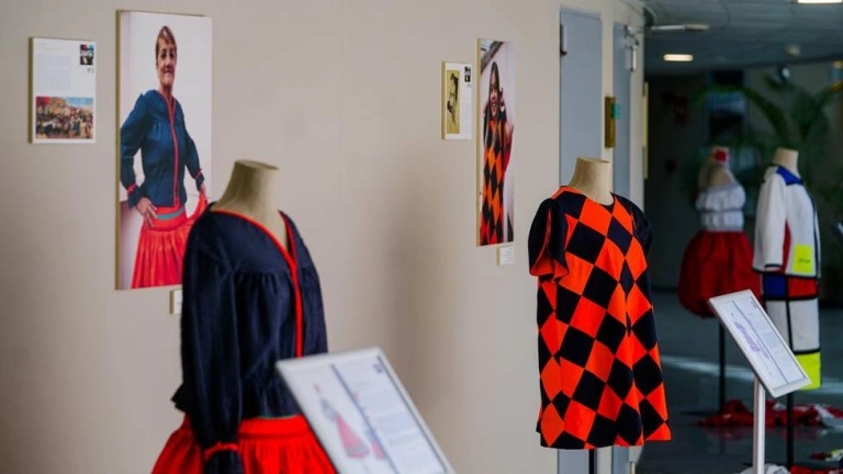 se han confeccionado artesanalmente con tejidos procedentes del vestuario utilizado durante la pandemia por los trabajadores que prestaron servicios esenciales.Los maniquíes que sustentan las prendas han sido fabricados artesanalmente con cartón reciclado, y se asientan sobre moqueta reciclada del Hospital de Emergencias de IFEMA, que la Comunidad de Madrid activó en la primera ola del virus. En su elaboración han colaborado personas con discapacidad intelectual de la Fundación AMÁS.