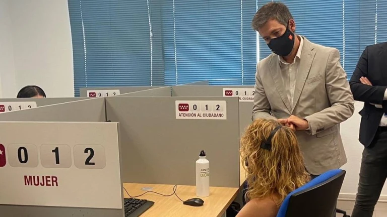 La Comunidad de Madrid ha ampliado el horario del servicio que ofrece el teléfono 012 Mujer para prestar atención las 24 horas del día los 365 del año. Lo ha hecho reforzando este recurso público y gratuito con la incorporación de cinco psicólogas especializadas en violencia contra la mujer. El viceconsejero de Presidencia, Miguel Ángel García Martín, ha visitado hoy estas oficinas, donde 16 profesionales informan y orientan en cada circunstancia a las usuarias, además de ofrecerles una atención psicosocial.