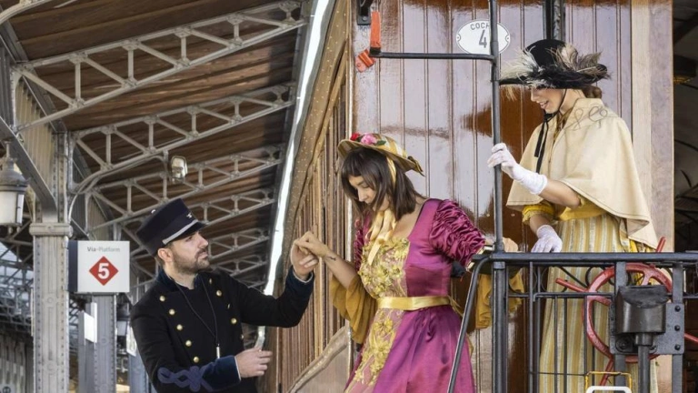 Se trata de una actividad cultural y de ocio única, que une la posibilidad de viajar en un tren histórico formado por vagones del siglo XIX y disfrutar de una jornada en este enclave declarado Paisaje Cultural Patrimonio de la Humanidad por la UNESCO en 2001.El convoy sale del Museo del Ferrocarril, en la estación de Delicias de la capital, donde un grupo de actores recibe a los viajeros a los que acompañan también durante el trayecto, recreando la historia y acontecimientos más importantes de este municipio del sur de la región. La salida es las 10:00 horas mientras que el regreso se produce a las 18:36, siendo alrededor de una hora el tiempo de viaje.El calendario completo en esta edición comienza los días 22, 23, 29 y 30 de abril; 1, 6, 7, 13, 14, 20, 21 y 27 de mayo; 3, 4, 10, 11, 17 y 18 de junio. Y retoma su actividad en septiembre, en este caso los días 16, 17, 23, 24 y 30; el 1, 7, 8, 14, 15, 21, 22, 28 y 29 de octubre, finalizando la temporada el 11 y 12 de noviembre.Los precios varían entre 25 y 40 euros en el caso de los adultos y de 20 a 30 para niños de 1 a 1,40 metros (los que midan menos de un metro viajan gratis si no ocupan asiento), dependiendo de la ruta elegida.Siete son los itinerarios.