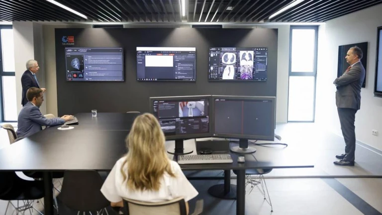A través de un sistema de imagen y audio se pueden realizar pruebas en equipos de Tomografía Computerizada con profesionales altamente especializados, trabajo en remoto y en tiempo real, lo que supondrá una mejora en la calidad asistencial. Esta técnica contará con la aplicación de Inteligencia Artificial (IA), que facilita la valoración de los resultados ya que identifica, mide y caracteriza las lesiones elaborando un informe preliminar. Adicionalmente, prioriza a los pacientes con hallazgos patológicos más graves.Liderada por el jefe del Servicio de Radiología del Hospital público Universitario Ramón y Cajal, el doctor Blázquez, esta tecnología avanza en la mejora del servicio, aportando grandes ventajas tanto para el usuario como el facultativo. Así, los enfermos son atendidos en su centro más cercano por los mejores técnicos, mientras que los radiólogos pueden ahorrar tiempo en la elaboración de los informes (hasta un 60% en algunos casos), ganar precisión y priorizar los asuntos más graves o urgentes.López–Valverde ha subrayado la importancia del Centro de Innovación en Salud Digital del Hospital público Enfermera Isabel Zendal “que cuenta con la colaboración de profesionales, empresas de tecnología sanitaria, farmacéuticas, fundaciones de investigación y