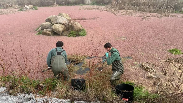 La Comunidad de Madrid continúa su lucha contra las plantas exóticas invasoras que constituyen una amenaza para los ecosistemas y especies autóctonas de la región. Para ello, la Consejería de Medio Ambiente, Agricultura e Interior ha retirado 1.700 metros cuadrados de helecho de agua (Azolla filiculoides) de la Charca de la Alberca, en Cenicientos. Este humedal, catalogado así por el Gobierno autonómico, supone un importante enclave para la reproducción de anfibios.