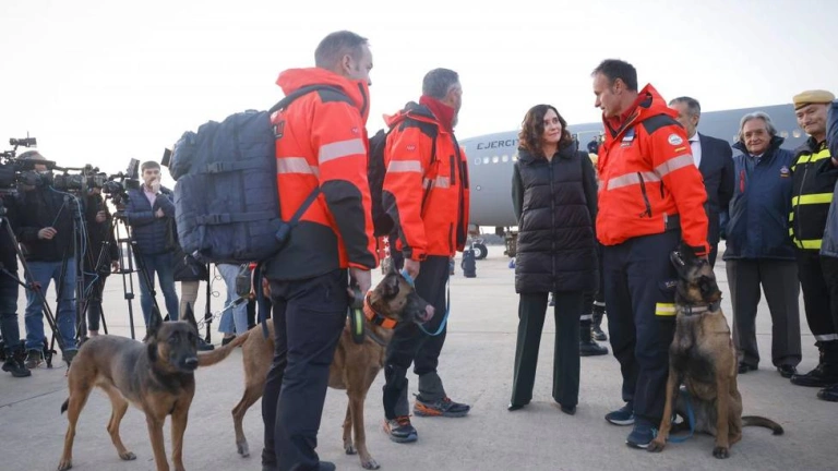 La presidenta de la Comunidad de Madrid, Isabel Díaz Ayuso, ha recibido hoy, en la base aéra de Torrejón de Ardoz, a los 40 efectivos de la Unidad Especial de Emergencia y Respuesta Inmediata (ERICAM) desplazados al terremoto de Turquía, a los que ha agradecido la labor humanitaria llevada a cabo sobre el terreno, y que ha permitido, entre otras acciones, rescatar con éxito a dos supervivientes tras varios días atrapados. La jefa del Ejecutivo autonómico ha dado la bienvenida hoy al contigente madrileño que ha aterrizado junto a los miembros de la Unidad Militar de Emergencias (UME), que también han participado en este depliegue.