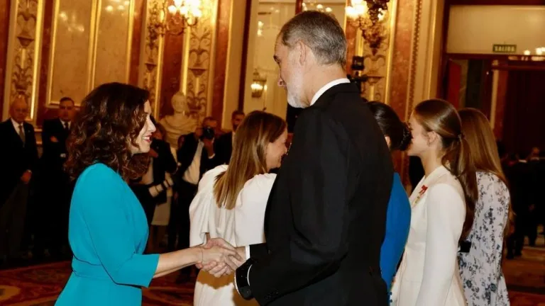Una vez concluido el acto, la jefa del Ejecutivo autono?mico ha saludado a Sus Majestades los Reyes, la Princesa de Asturias y la Infanta Sofi?a y tras el desfile militar que se ha celebrado en la Carrera de San Jero?nimo, Di?az Ayuso se ha trasladado al Palacio Real, para ser testigo de la imposicio?n del Collar de la Real y Muy Distinguida Orden de Carlos III a don?a Leonor a manos de su padre el Rey Felipe VI, y participar en el almuerzo organizado por Casa Real con motivo de este acontecimiento histo?rico.