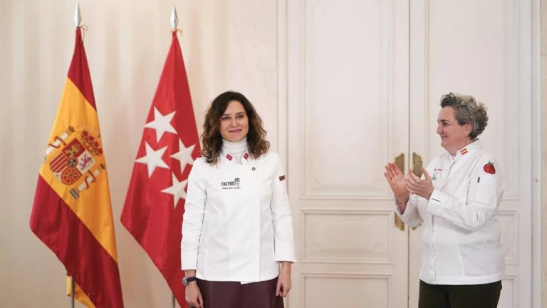 La presidenta de la Comunidad de Madrid, Isabel Díaz Ayuso, ha sido distinguida hoy con la chaquetilla de Embajadora de la Mujer en la Gastronomía otorgada por la Federación de Cocineros y Reposteros de España (FACYRE). Esta distinción reconoce su apoyo al sector y su contribución al fortalecimiento del papel de la mujer en el mundo culinario.