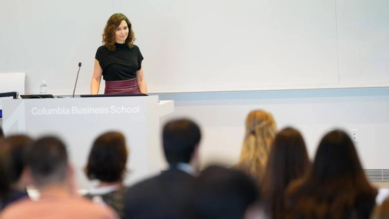 La presidenta de la Comunidad de Madrid, Isabel Díaz Ayuso, ha presentado hoy en la Columbia Business School de Nueva York el “despliegue único en Europa” que ha puesto en marcha el Gobierno regional en materia de transformación digital con la finalidad de liderarla y de que este proceso esté protagonizado por el español.