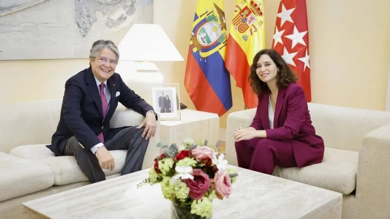 La presidenta de la Comunidad de Madrid, Isabel Di?az Ayuso, ha recibido hoy, en la Real Casa de Correos, al presidente de la Repu?blica del Ecuador, Guillermo Lasso, en el marco de su visita institucional a Espan?a. El objetivo del encuentro es continuar estrechando lazos econo?micos y culturales con este pai?s, que sera? el invitado en la pro?xima edicio?n de FITUR 2024.