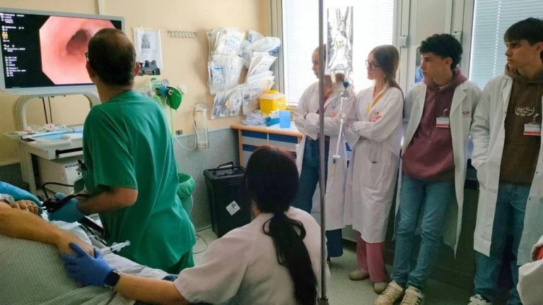 en compañía de profesionales sanitarios y no sanitarios, así como residentes.Los estudiantes han podido conocer de cerca las instalaciones y el funcionamiento de servicios como Anatomía Patológica, de la mano de la jefa de Servicio, Montserrat Chao; Banco de Sangre; Biblioteca, con Mercedes Alhambra; Farmacia Hospitalaria, acompañados de su jefe, Benito García; Radiodiagnóstico; Análisis Clínicos y Bioquímica, con charla especializada de la jefa de Servicio, Guadalupe Ruiz; Cocina Hospitalaria, con las explicaciones de su jefa, Marisol Castaño. y Mantenimiento e Ingeniería Técnica, con el ingeniero, Miguel Garrido, que les ha enseñado parte de la infraestructura que dota al hospital de sostenibilidad y eficiencia energética con el autoconsumo de energía generada por casi 3.200 paneles fotovoltaicos o el renovado sistema de calderas de gas natural para la implantación, producción y distribución de frío y calor.Además del recorrido realizado por las instalaciones del centro público sanitario de la Comunidad de Madrid, los estudiantes de cuarto de la ESO han recibido charlas sobre Gestión, con la administrativo Rocío Grijota; Asuntos Generales y Medioambiente, con Mercedes Condés; Enfermedades de Transmisión Sexual (ETS), explicadas por el facultativo especialista de Medicina Interna, Rafael Torres; de Enfermería, contada por el enfermero de continuidad asistencial y Geriatría, Daniel Ordorica, y el coordinador en prácticas de Técnicos de Cuidados Auxiliares de Enfermería (TCAE), José Luis Varas, y de Obstetricia y Ginecología, impartida por las facultativas Cristina Khouri y Raquel Isla. Varios alumnos también han podido ver la intervención con endoscopia a pacientes en Aparato Digestivo, con ayuda del jefe del Servicio, José Luis Urda y la facultativa, María Delgado.