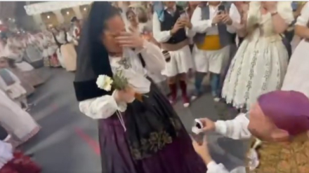 Paloma Núñez y Lluís Maiques,miembros de la hoguera Parque de las Avenidas, cuentan en Mediodía COPE Alicante cómo vivieron la emotiva pedida de mano en la plaza del Ayuntamiento.