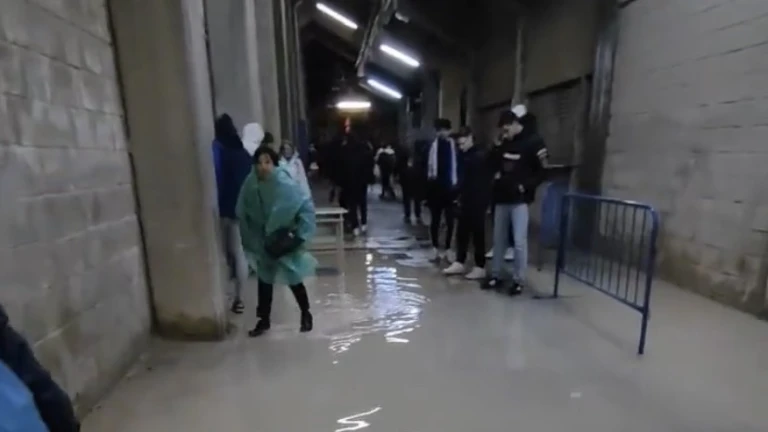 Los aficionados tienen que sortear charcos gigantes en Preferente para poder acceder al partido este viernes.