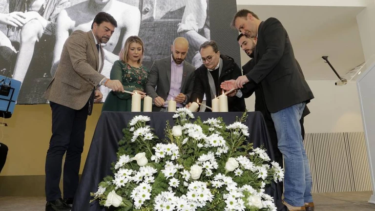 El Alcalde, Luis Barcala, junto a la vicealcaldesa, Mª Carmen Sánchez, el concejal de Cultura, Antonio Manresa, y miembros de la Corporación Municipal, representantes de la Asociación Diversitat, de la Comunidad Romaní (FAGA), la Comunidad Judía Alicante, la Embajada de Israel en España,y de la cultura, empresa y sociedad civil alicantina, han participado en el hall del edificio Séneca en un homenajear a las víctimas del Holocausto, en el día en el que se conmemora la liberación en 1945 por las tropas soviéticas del campo de concentración y exterminio nazi de Auschwitz-Birkenau y fecha en la que la Asamblea General de las Naciones Unidas proclamó oficialmente como el Día Internacional de Conmemoración en Memoria de las Víctimas del Holocausto.