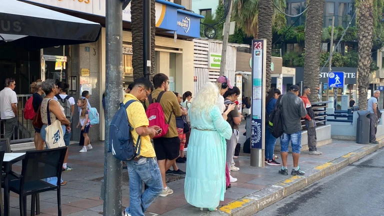 Caos en las paradas del bus interurbano en Alicante: colas y 21 autobuses en cocheras por falta de seguridad