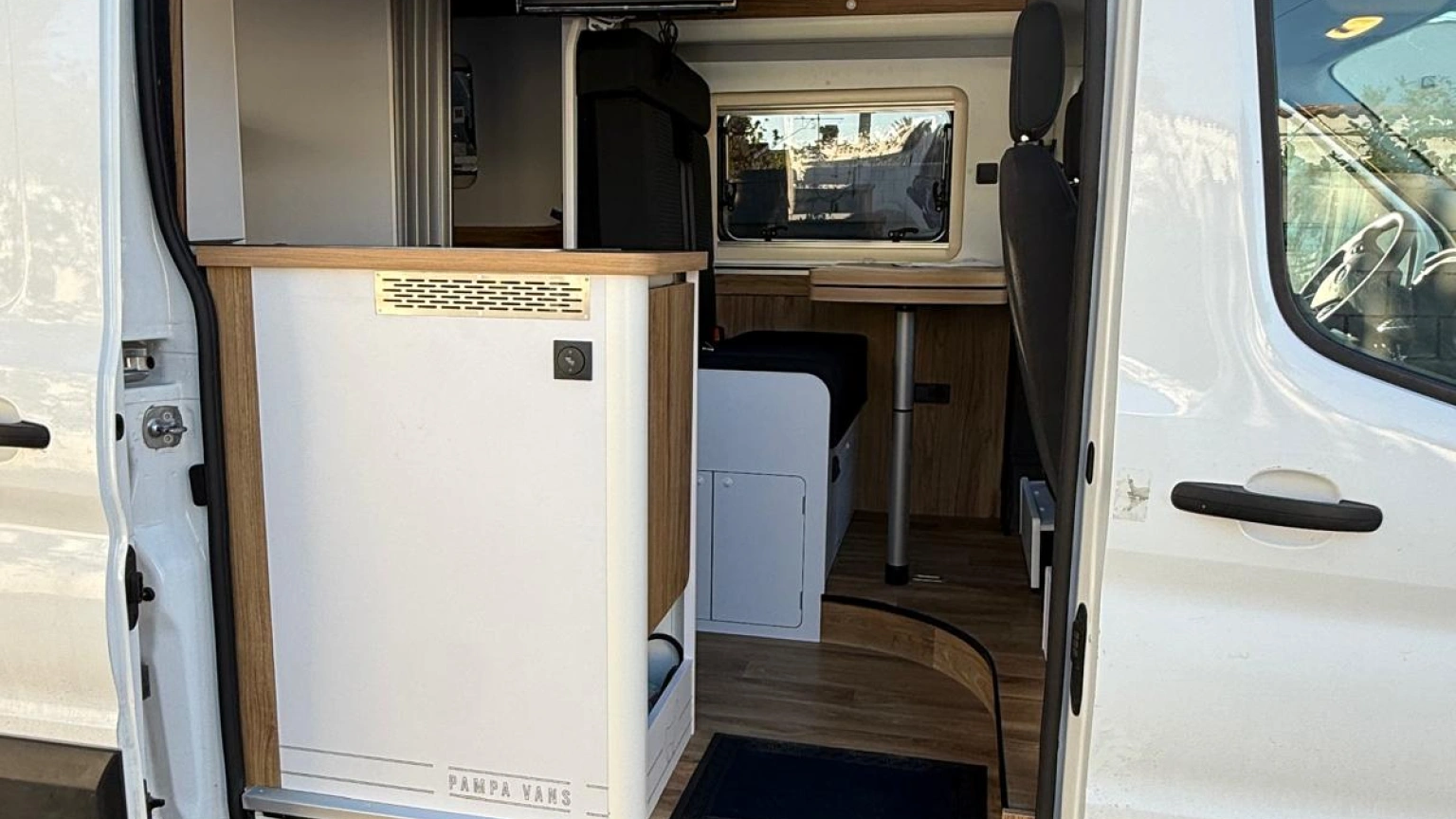 Las furgonetas de Trotamundos Camper son auténticas casas móviles. La empresa se encarga de comprar los vehículos y personalizarlos por completo. "Queremos algo personal, que no sea una camperización que viene ya de fábrica", detalla Candela. Su flota actual incluye modelos para cuatro personas equipados con cocina, nevera, televisión, cuarto de baño y ducha, todo integrado en el espacio de una furgoneta.