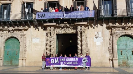 Por una parte, el alcalde, Luis Barcala, y los ediles del grupo popular, entre los que se encontraba la responsable municipal de Bienestar Social y Derechos Civiles, Begoña León, han desplegado una pancarta en el balcón del consistorio con la leyenda '8M Día Internacional de las Mujeres' , tanto en castellano como en valenciano.