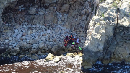 Con unas grúas, los bomberos han logrado extraerlo de una pequeña cala rocosa