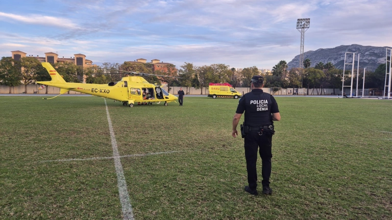 Un desfibrilador y una rápida actuación salvan la vida a un aficionado en Dénia
