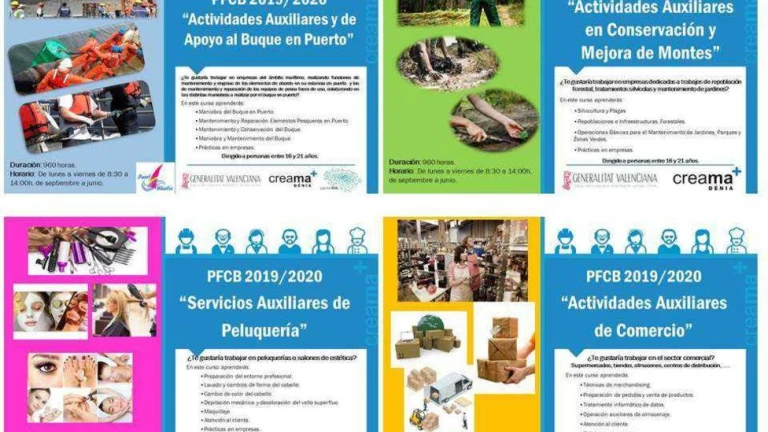 Creama Dénia aumentará su oferta de programas formativos de cualificación básica para jóvenes de 16 a 21 años en el curso 2019/2020. A los programas ya consolidados de “Servicios auxiliares de peluquería y estética” y “Actividades auxiliares de comercio”, en el nuevo curso se sumarán los de “Actividades auxiliares de apoyo en buque en puerto” y “Actividades auxiliares en conservación y mejora de montes”, todos subvencionados al 100% por la Conselleria de Educación. La suma de las cuatro subvenciones concedidas por la conselleria para llevar a cabo estos programas formativos asciende a 147.147 euros.