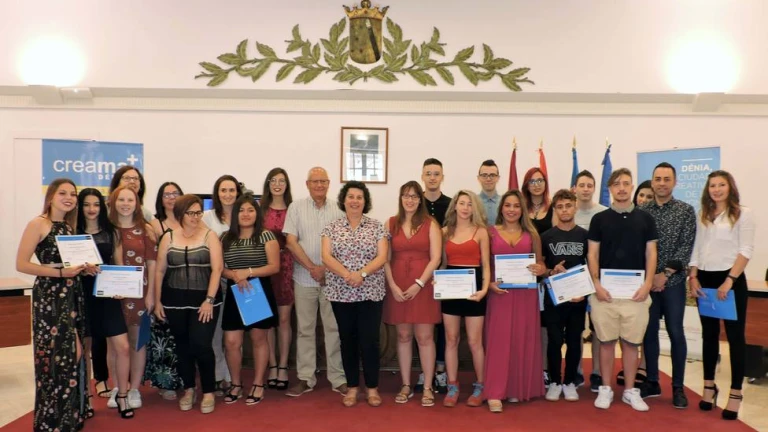 Un total de 15 alumnos de entre 16 y 21 años, procedentes de Dénia y de las localidades de Pedreguer, Benissa, Xàbia y Pego, han recibido hoy sus diplomas por la finalización de los programas formativos de este curso, que Creama Dénia comenzó a impartir en octubre de 2018. La Conselleria de Educación ha subvencionado el 100% de ambos programas con una ayuda total de 79.488 euros.