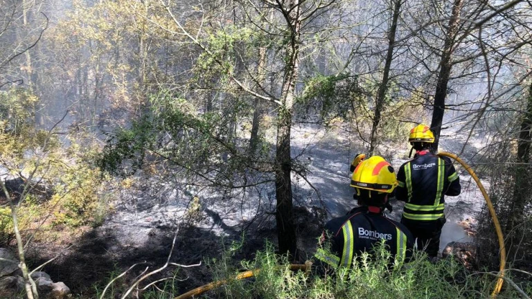 Bomberos y Protección Civil luchan contra las llamas se han desatado en una pinada muy densa