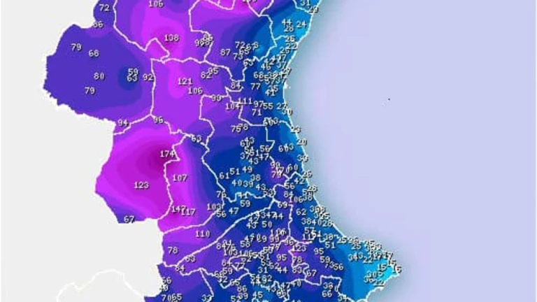 Mapa de medición de la lluvia registrada en las ultima horas.