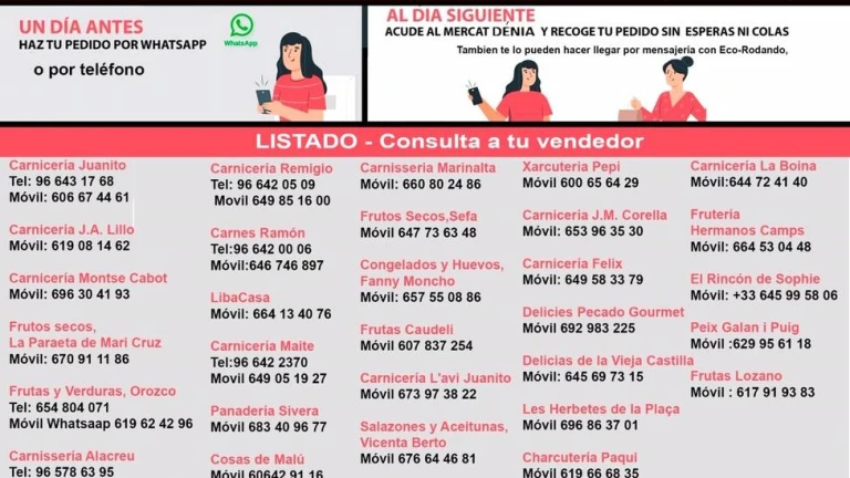 Lista actualizada de teléfonos de los vendedores del Mercat de Dénia.