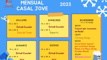 Continúa la programación diaria por las tardes del Casal Jove con sesiones de estudio, juegos de mesa, deportes, cinefòrum y juegos de PS4