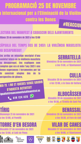 El Ayuntamiento de Alcalà-Alcossebre prepara la programación enmarcada en el Día de la Eliminación de la Violencia contras las Mujeres