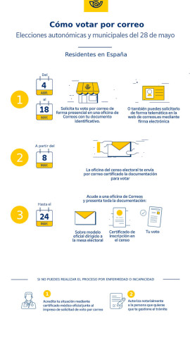Hasta el 18 de mayo se puede solicitar el voto por correo de manera telématica desde la web www.correos.es o presencialmente en cualquier oficina de Correos