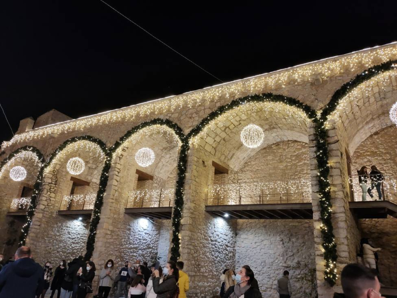 El emplazamiento escogido ha sido la plaza de Santa María. Es el punto de acceso al recinto amurallado de la ciudad papal y que, desde que el 18 de diciembre se encendiera esta iluminación, está recibiendo a miles de personas, algo habitual en Semana Santa o en el periodo estival, pero no en los meses más fríos del año.