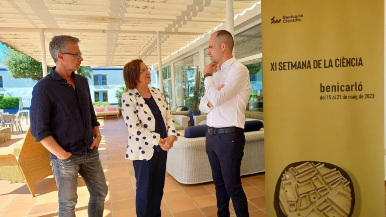 La alcaldesa de Benicarló, Xaro Miralles, acompañada del presidente de Abacs (Asociación Benicarlanda de Amigos de la Ciencia y la Salud), Àngel Alberich, y del técnico de Cultura, Rafa Sánchez, ha presentado una nueva edición de la Semana de la Ciencia de Benicarló, la primera que se organiza bajo el paraguas de la marca recientemente creada 'Benicarló Científic' y que convertirá durante una semana la ciudad en un espacio de reflexión y conocimiento de las cuestiones científicas más actuales.