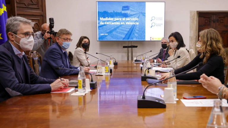 Así se ha puesto de manifiesto en la rueda de prensa posterior a la reunión que el president ha mantenido en el Palau de la Generalitat con la ministra de Transportes, Movilidad y Agenda Urbana, Raquel Sánchez, en la que la titular ministerial ha presentado un plan de medidas de choque para la mejora de los servicios de Cercanías de la red ferroviaria de la Comunitat Valenciana que permita la eliminación "drástica" de las supresiones y cancelaciones.