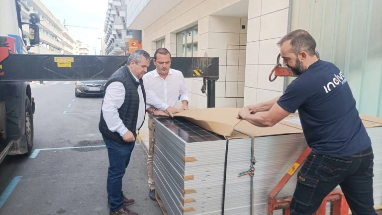 La concejalía de medio ambiente ha dado comienzo ya a la instalación de placas solares en edificios municipales para mejorar su eficiencia energética, el edil del área, Miguel Castell, ha estado junto al alcalde, Andrés Martínez, en el momento de la descarga de las placas fotovoltaicas en el edificio sociocultural, un total de 44 unidades que se instalarán en los próximos días en la parte superior de este inmueble.