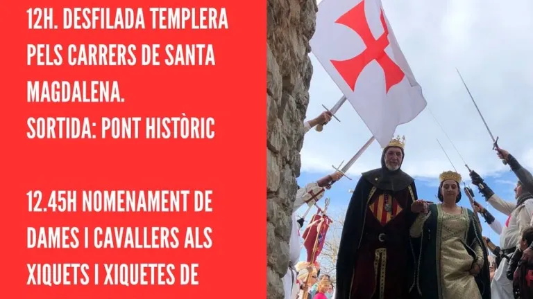 Posteriormente, a las 12.45h se realizará en La Capella, el acto de nombramiento de Damas y Caballeros a las niñas y niños de Santa Magdalena, que así lo deseen. Sergio Bou, alcalde de Santa Magdalena, explica que: “poco a poco vamos recuperando eventos, que debido al Covid, se habían quedado estancados, tal y como es el caso de las Jornadas Templarias, que este año cumplirán su tercera edición”. Y es que, para el primer edil magdalenero, estas jornadas “nos sirven para poner en valor nuestro pasado templario, con el castillo Pulpis como principal insignia”.