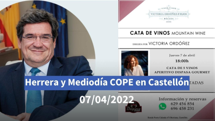 En "Herrera en COPE" nos preparamos para la conferencia del ministro José Luis Escrivá en Castelló; y en "Mediodía COPE" conocemos en el GastroCope los vinos de Victoria Ordoñez.