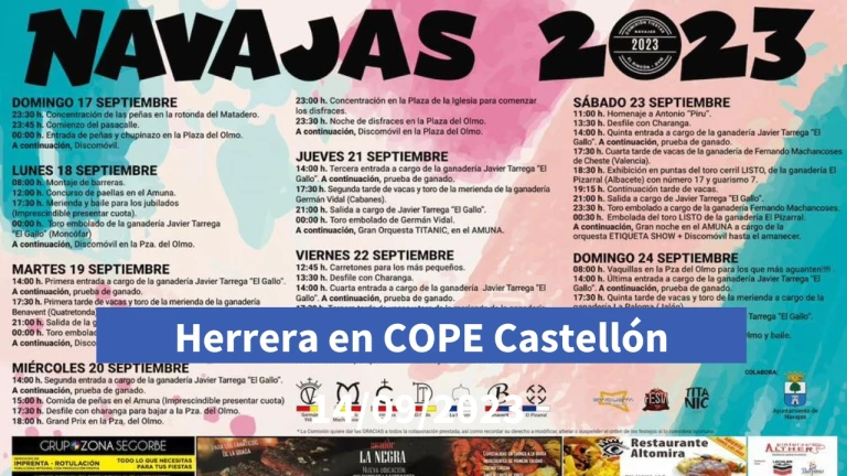 La polémica en las fiestas de Navajas y la Feria de Cantavieja protagoniza el "Herrera en COPE Castellón" de hoy.