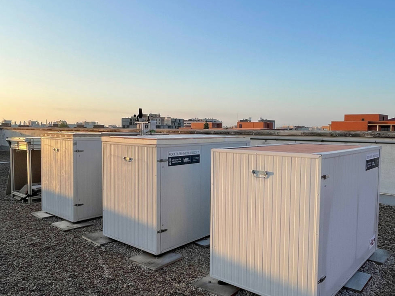 Para ello, en el marco de ROOFTILES II, se han diseñado y construido tres prototipos de validación en las instalaciones del ITC, a modo de laboratorio energético, completamente sensorizados y climatizados, que han permitido la evaluación de soluciones constructivas para cubiertas planas en las mismas condiciones ambientales. Para la adquisición y visualización de los datos, se ha implementado una plataforma de monitorización y control basada en servicios privados cloud.