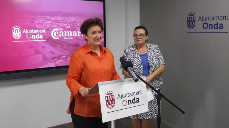 La alcaldesa de Onda, Carmina Ballester, junto a la presidenta de la Cámara de Comercio, Lola Guillamón, han puesto en valor el compromiso entre ambas entidades por fortalecer el desarrollo empresarial local mediante actividades de dinamización del mercado, asesoramiento en transformación digital y formación para comerciantes y jóvenes.