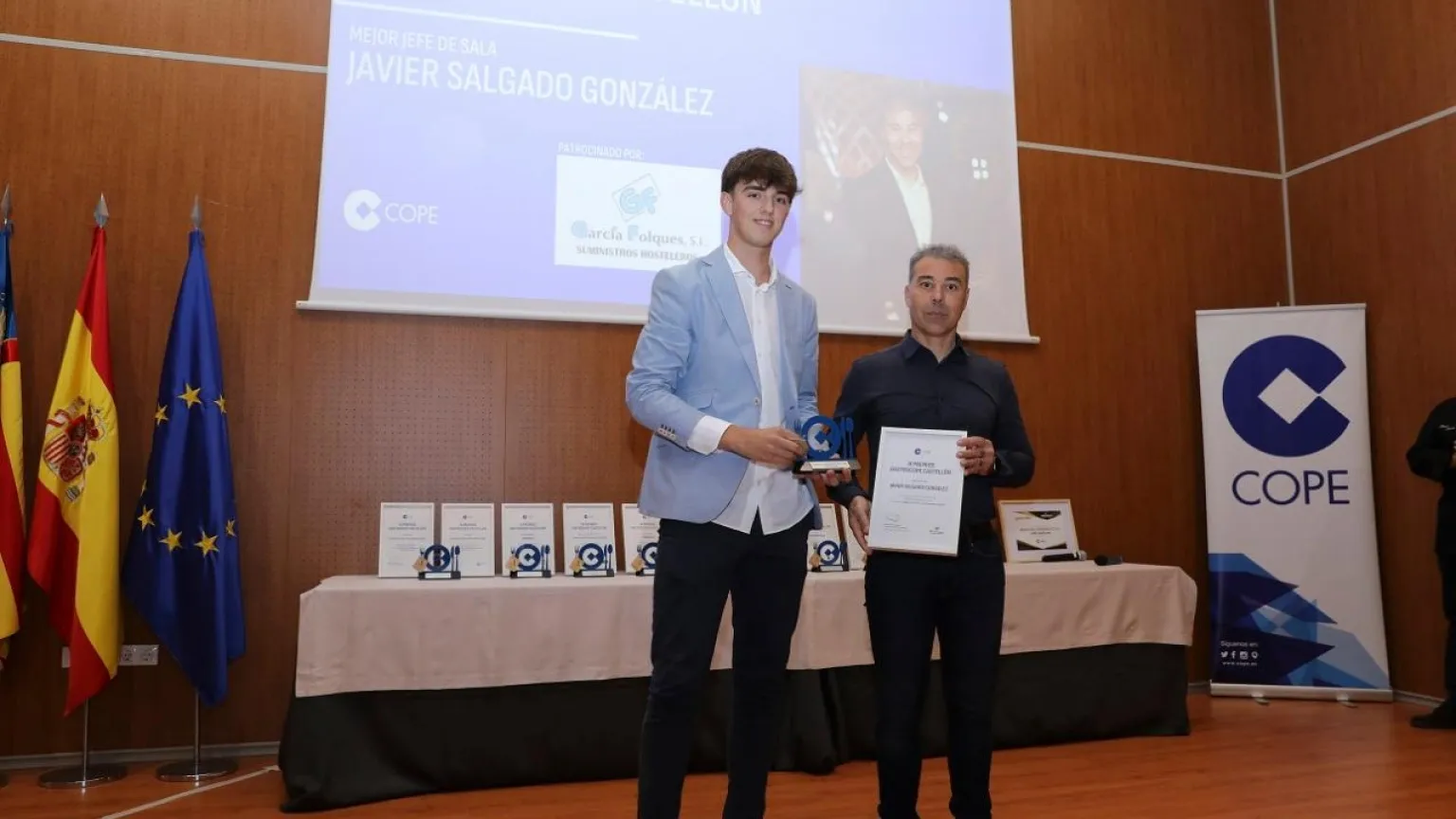 Maurici García de Suministros García Folques, hizo entrega del Premio GastroCOPE Castellón al Mejor Jefe de Sala a Javier Salgado, Metre de los Hoteles Castelló Center y Jaime I.