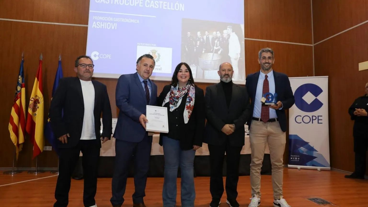ASHIOVI, Associació d'Hostaleria i Oci de Vila-real, recibió de manos de la concejala de Comunicación del Ayuntamiento de Vila-real, Anna Vicens, el Premio GastroCOPE Castellón a la Promoción gastronómica.