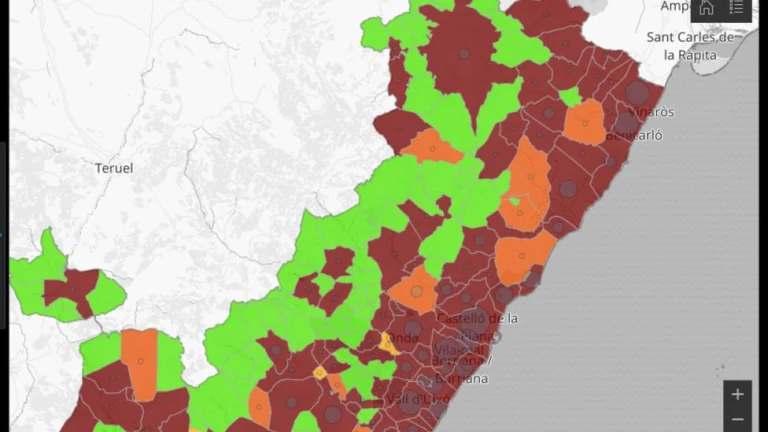 Castellón casi se tiñe de rojo al completo según la última actualización de datos por municipios presentada por Sanitat.