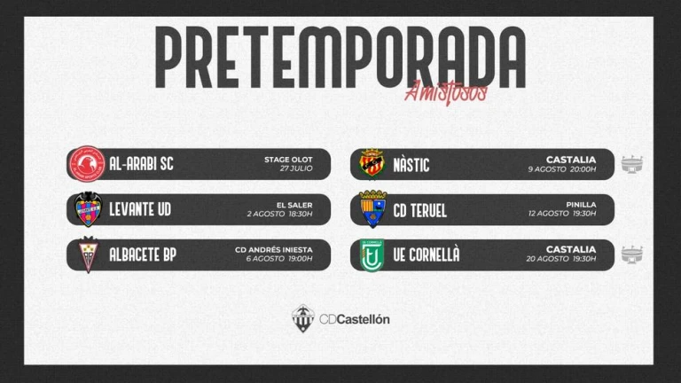 Por lo tanto el calendario de la pretemporada del CD Castellón quedará así: