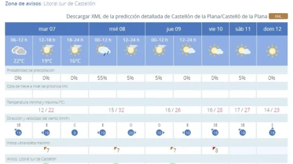De hecho, las previsiones apuntan a que pueda llegarse a los 32ºC en zonas como la capital de la Plana o los 31ºc en Vall d'Uixó; mientras que estos valores serán más suaves en la costa de la mitad norte, donde podrá llegarse a registrar 26ºC o en el interior donde se mantendrán con pocos cambios, alrededor de los 22ºC.