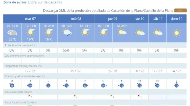 La entrada de viento de Poniente elevará las temperaturas en la franja litoral de Castellón desde este martes, aunque será el miércoles cuando los valores sean significativamente altos, superándose los 30ºC en amplias zonas.