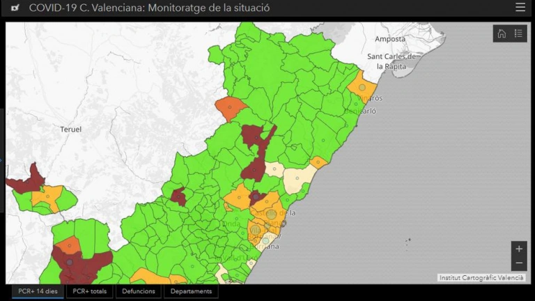 Cabe apuntar eso sí que de las 28 poblaciones que muestran casos de Covid-19 4 se encuentran en nivel rojo. Entre en zona con muy alta incidencia de coronavirus Culla, al contabilizar 4 casos y una IA de 831 puntos, mientras que se mantienen en altos valores Montanejos (7 casos y una IA de 1.241 puntos), Sant Joan de Moró (12 casos y 371 puntos) y Les Useres (3 casos y 312 puntos).