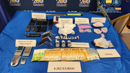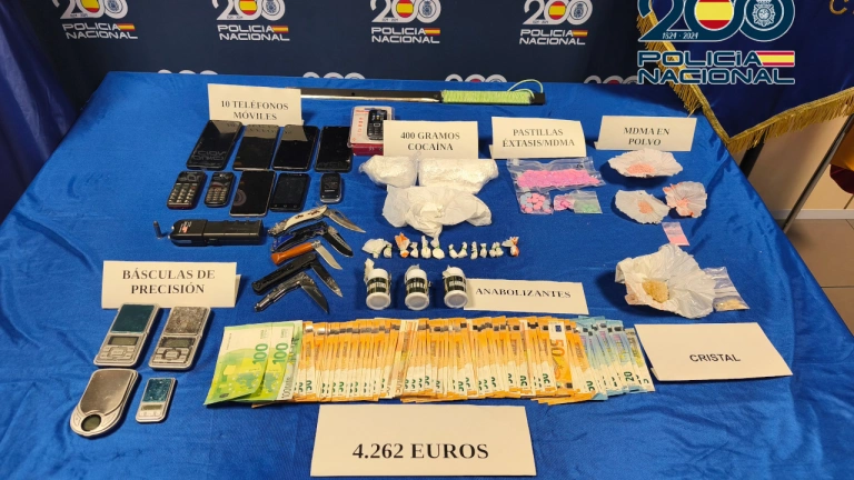 La operación culminó con una entrada y registro en el domicilio, donde se aprehendieron 101,83 gramos de éxtasis en diferentes formatos, 394 gramos de cocaína, diez gramos de marihuana, un gramo de hachís y un total de 4.262 euros en efectivo.