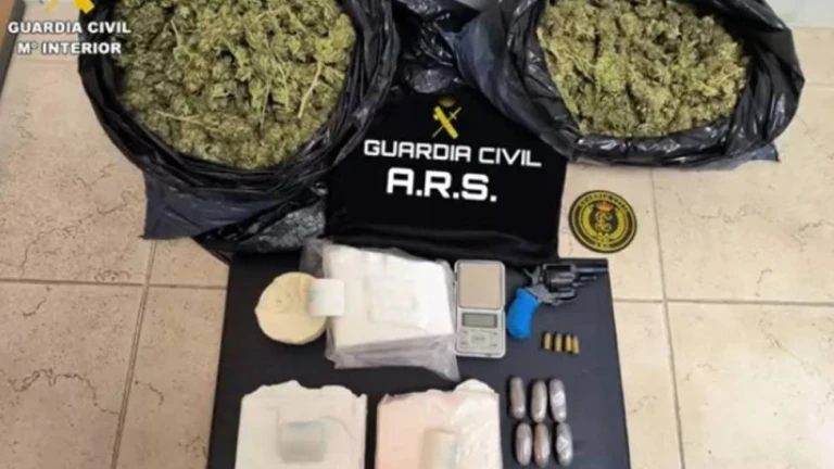 Y es que la Guardia Civil encontró hasta 1.500 gramos de cocaína, 250 gramos de sustancias por adulterar, 60 gramos de hachís y unos 2 kilos de marihuana, una droga que la mujer dijo desconocer de su presencia. Junto a ello, también se localizó una báscula y un revólver con cuatro cartuchos.