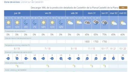 Por ello, las previsiones meteorológicas efectuadas por la Agencia Estatal de Meteorología apuntan a que la nubosidad será protagonista el domingo, con la llegada de lluvias a partir de la tarde que podrían afectar al desarrollo de las últimas horas de las Fiestas de la Magdalena, con el tradicional acto del Vítol que pone fin a los nueve días en los que la capital de la Plana rememora su fundación.