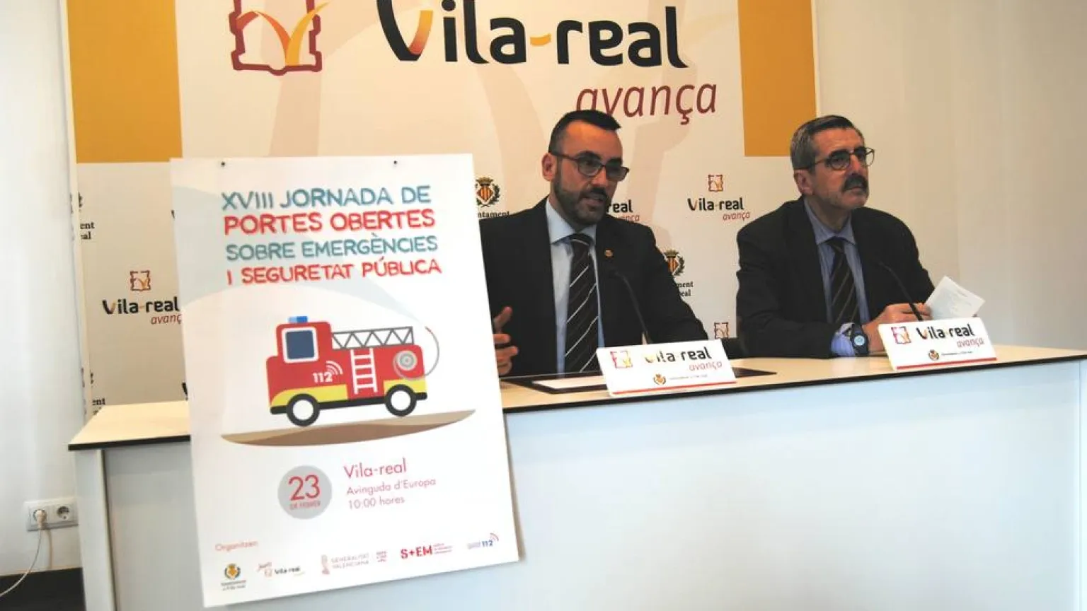 El director general de la Agencia Valenciana de Seguridad y Respuesta a las Emergencias (Avsre), José María Ángel, y el alcalde de Vila-real, José Benlloch, han presentado la XVIII Jornada de Puertas Abiertas, que organiza el Centro de Coordinación de Emergencias (CCE) y que reunirá a 300 profesionales de 22 organismos de la seguridad y las emergencias.