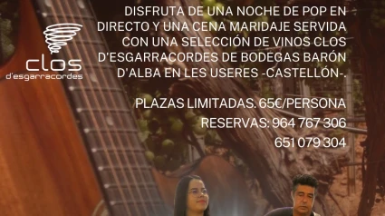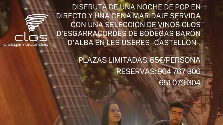 La primera cita, la que es en su propia casa, se presenta con novedad. Y es que el estilo de música varía. Entra el pop de la mano de La Brisa, un dúo guitarra y voz que amenizará la noche del sábado en una cita nombrada “Pop & Wine” que nos presenta desde Barón d'Alba Sergio Garrido: "Es un concierto con un grupo joven, que hacen versiones de pop y con el maridaje del vino y la cena frente a los viñedos tiene buena pinta".