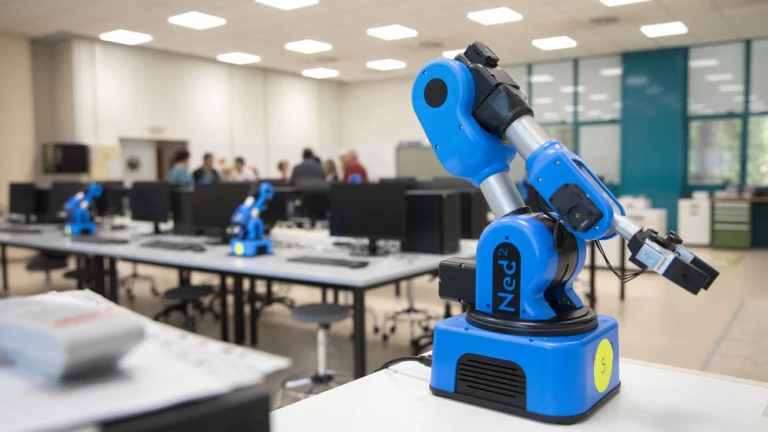 Cuenta con ordenadores de última generación, brazos robóticos colaborativos, plataformas móviles y un espacio abierto que permite la experimentación por parte del alumnado.