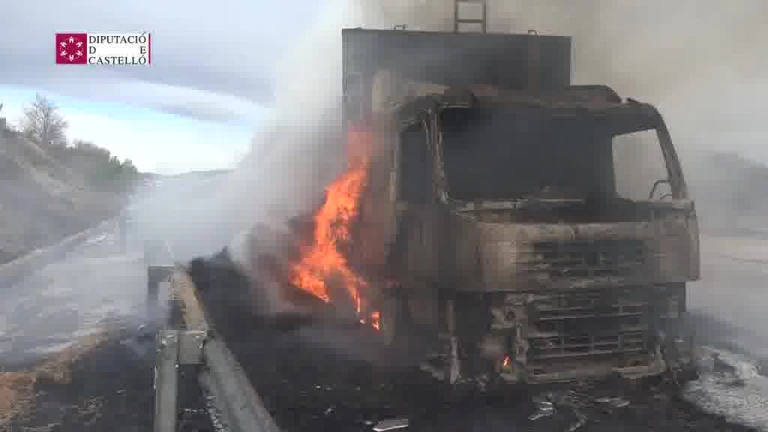 Bomberos extinguen incendio de un camión en la A-23 en Jérica